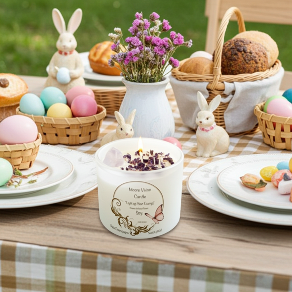Indulge in the beauty and tranquility of our Moore Vision Candle, complete with a custom-designed box to elevate your sensory experience.